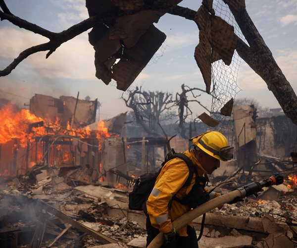 Massive wildfires are engulfing neighborhoods in Los Angeles and surrounding areas, leading to evacuation orders for over 70,000 residents and leaving more than 400,000 homes without power. Four major fires, including the Palisades and Eaton fires, have consumed over 20,000 acres and resulted in at least two fatalities. In response to the crisis, the U.S. Department of Defense is deploying Navy helicopters to aid firefighting efforts, while Southern California Edison has proactively shut off power to prevent further blazes. The Los Angeles County Fire Department is struggling to manage the situation as multiple fires burn simultaneously, marking some of the most destructive wildfires in the region's history. With seasonal winds exacerbating the flames, the federal and state governments are mobilizing resources to combat the escalating disaster.